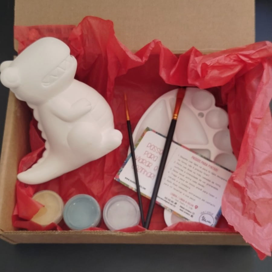 2)Leva o kit para casa, com tudo incluído: tintas próprias para cerâmica, pincéis e instruções básicas.