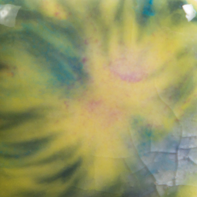 Cone 6 – oxidação (imagem menor): O vidrado base desbota – os cristais desvanecem e fundem-se. Mobilidade aumentada. Podem ocorrer problemas na superfície.