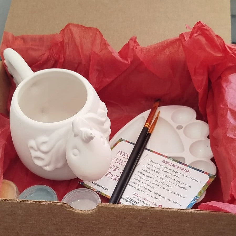 Dá asas à tua criatividade com este kit completo de pintura em cerâmica! O processo é simples e pensado para todas as idades: