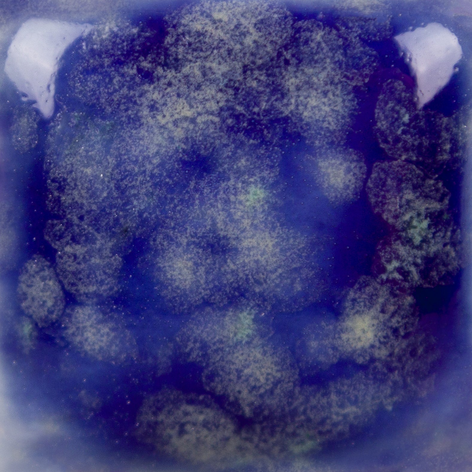Cone 06 – oxidação (imagem maior): Starry Night é um vidrado base semi-opaco azul cobalto com uma variedade de cristais amarelos.
