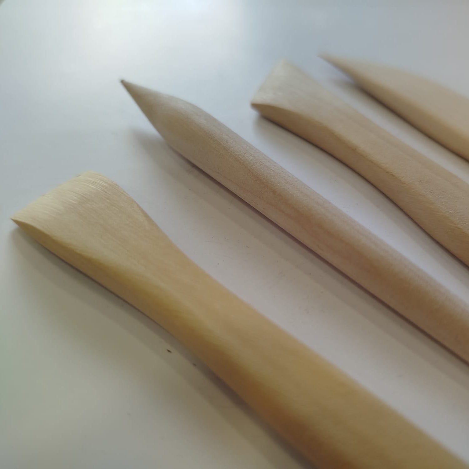 Os teques de madeira são ferramentas clássicas e indispensáveis no trabalho com cerâmica. Servem para modelar, alisar, cortar e dar forma ao barro com suavidade e precisão.