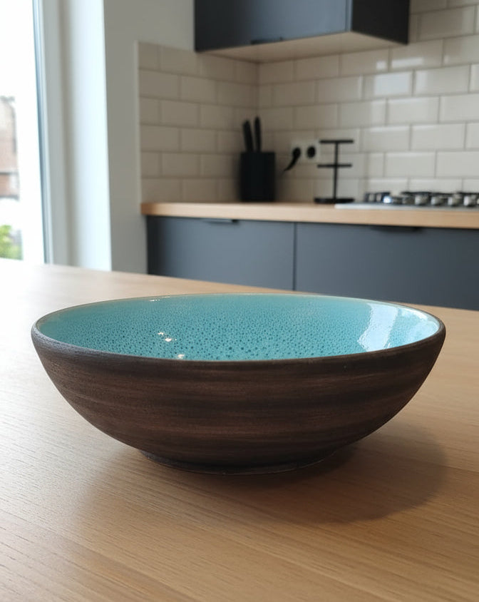 Esta tigela em cerâmica artesanal encanta pelo seu equilíbrio entre cor e textura.