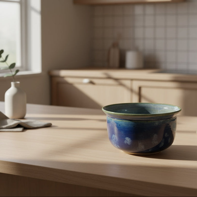O esmaltado azul brilhante com efeitos confere-lhe profundidade e um toque visual elegante, perfeito tanto para usar na cozinha como para decorar qualquer espaço da casa.
