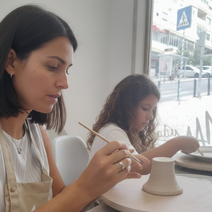 Cada participante irá moldar uma peça e pintá-la com diferentes engobes, dando-lhe um toque pessoal e único.